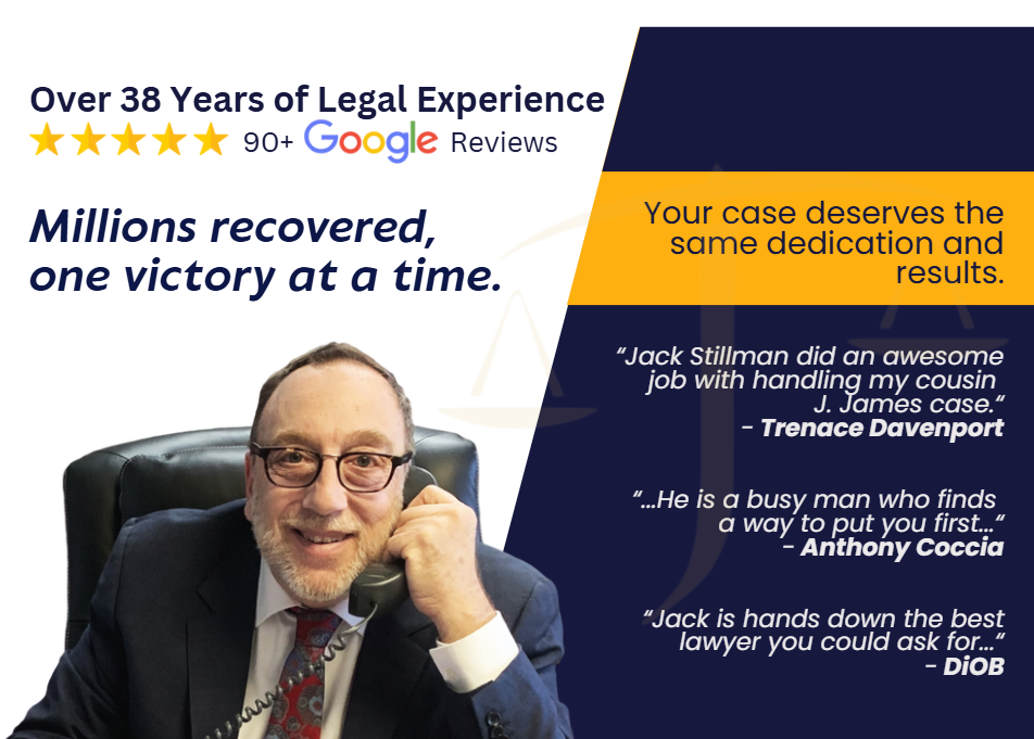 To get the expert advice you need, or to learn what your case may be worth, call attorney Jack L. Stillman today for a free consultation 732-462-7040. Remember there is no charge to you until you receive your settlement.