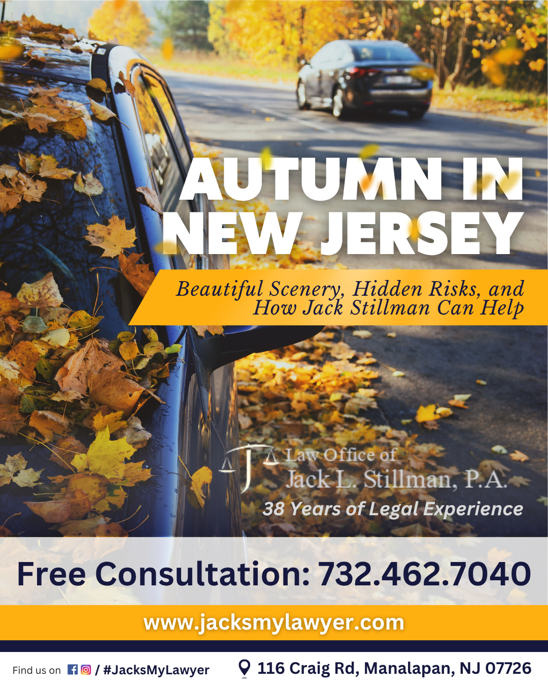 If you’re injured on the job or find yourself facing traffic or DUI charges this fall, experienced legal help can make all the difference. Attorney Jack Stillman has over 38 years of experience handling Personal Injury, Workers’ Compensation, DUI, and Traffic Court cases throughout New Jersey. With a perfect 5-Star Google rating, Jack is known for providing expert legal advice, achieving outstanding results, and offering personal, one-on-one attention to every client.